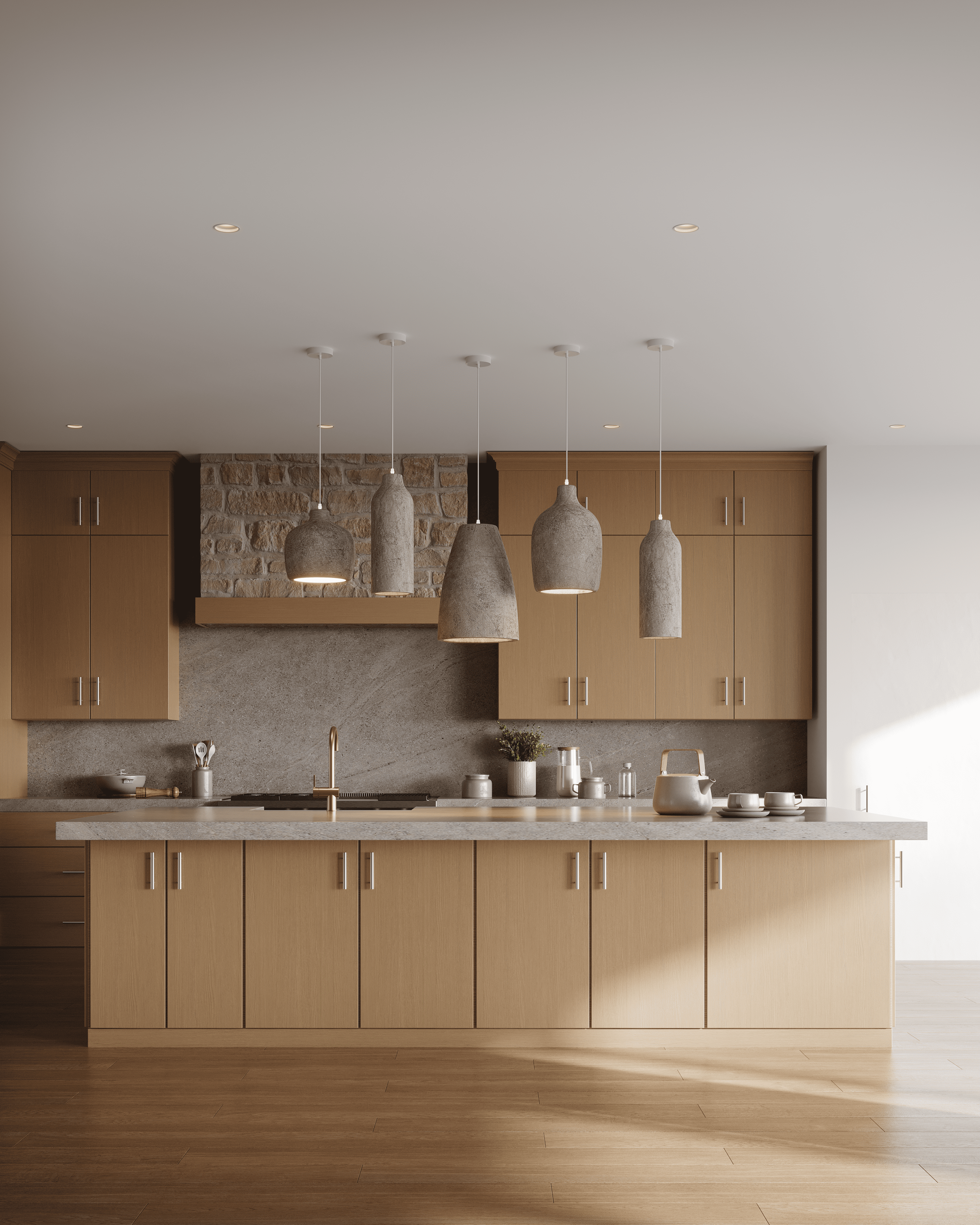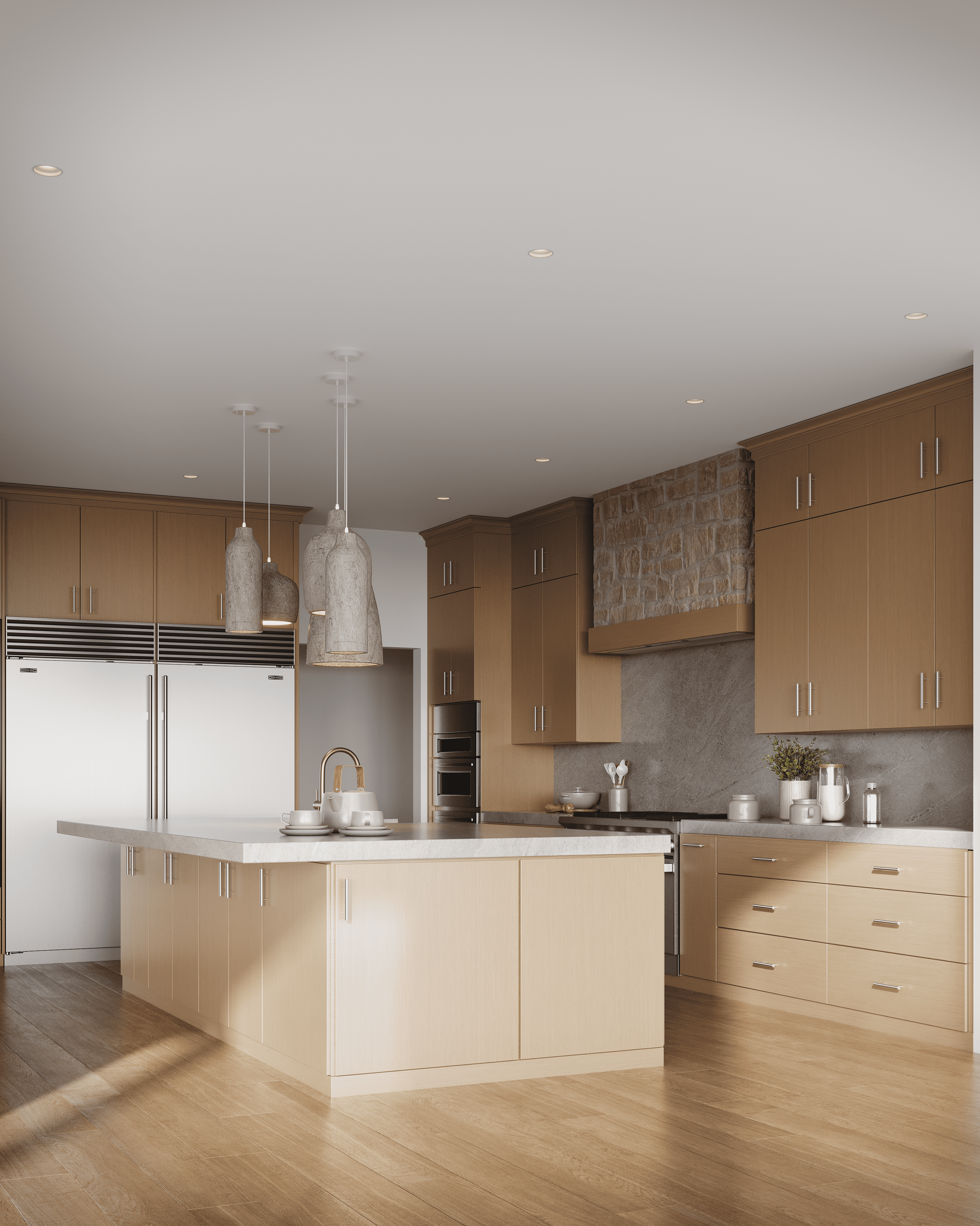 Designed by Anna Reed Designs. A private owner's retreat visualized across every interior space, from the great room and basement bar to the back kitchen, upstairs loft, and dining area. Spring light, open landscape, and every material considered down to the last detail.