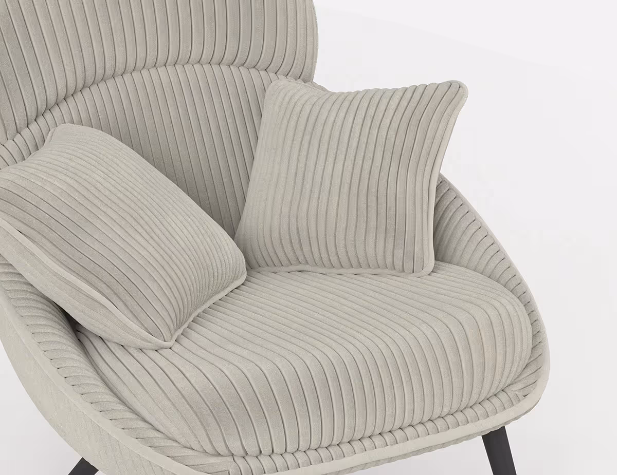 This project was developed for a client specializing in premium furniture design, with a focus on refined textures and timeless silhouettes. The centerpiece of the scene is a plush armchair, carefully rendered to capture the tactile quality of the fabric and the soft interplay of light and shadow.
