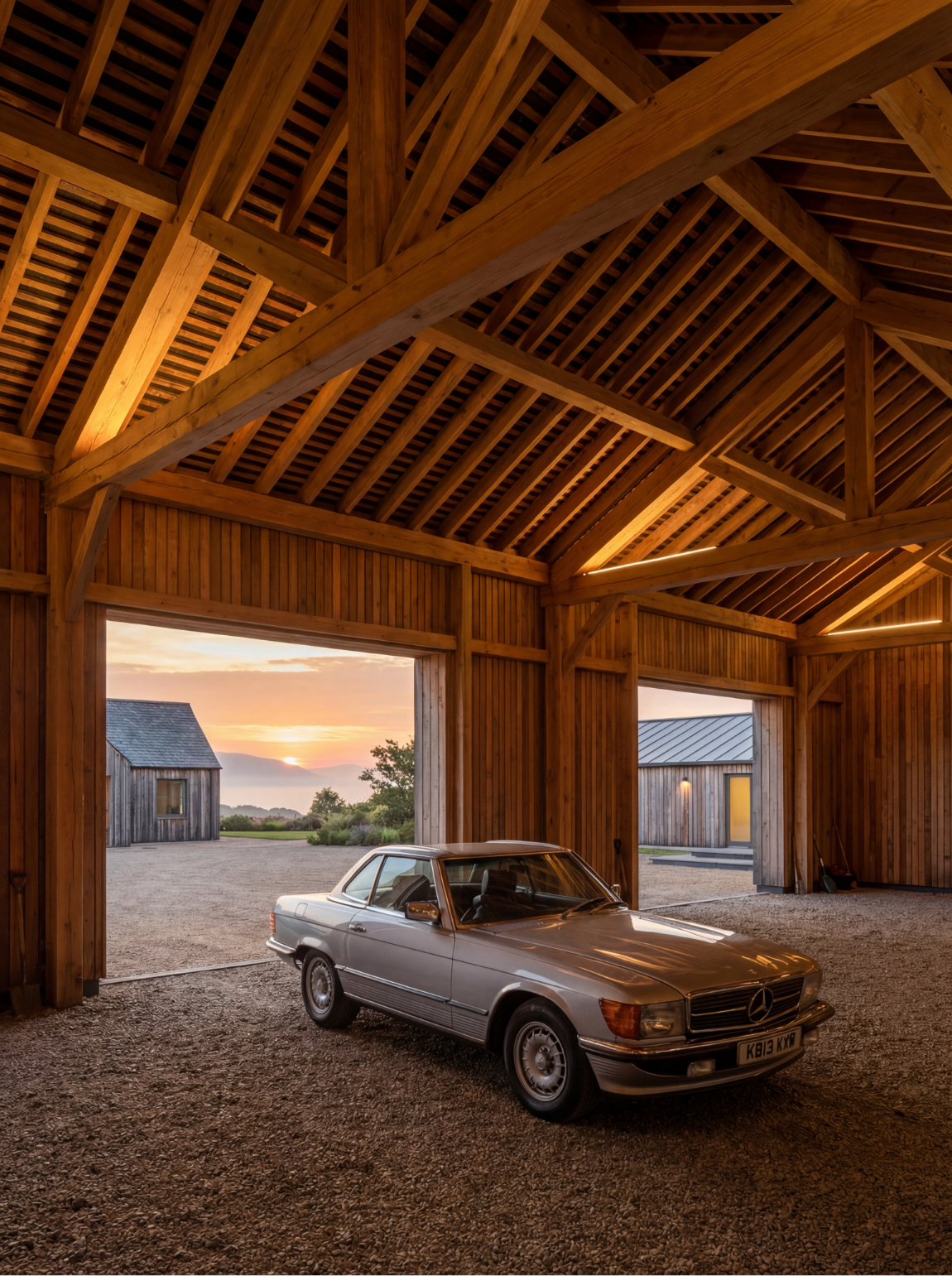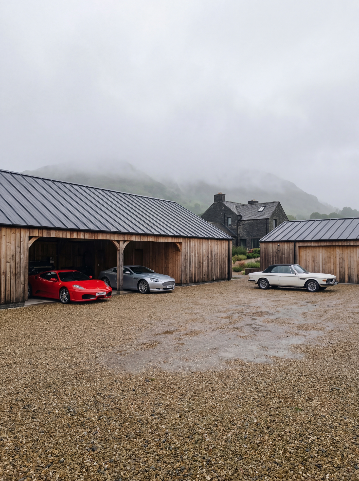 This project formed part of a wider full-property visualization for Fletcher Bassi Design, centered on the creation of a refined classic car barn designed to house a private collection of Porsche vehicles. The aim was to present the space not as a traditional workshop, but as a calm, gallery-like environment where vehicle display, leisure, and social use coexist naturally within a rural setting.