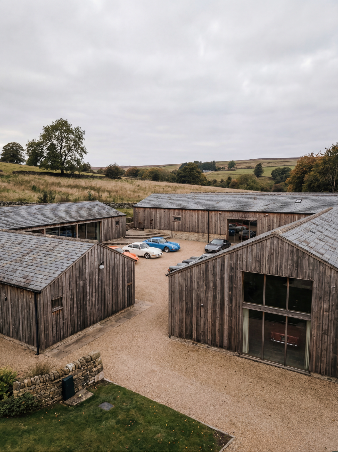 Midway through production, the project evolved significantly. Originally conceived as a single contemporary barn, Green Belt planning constraints required the scheme to be reworked into a farmstead-style composition of three separate buildings arranged around a central courtyard.